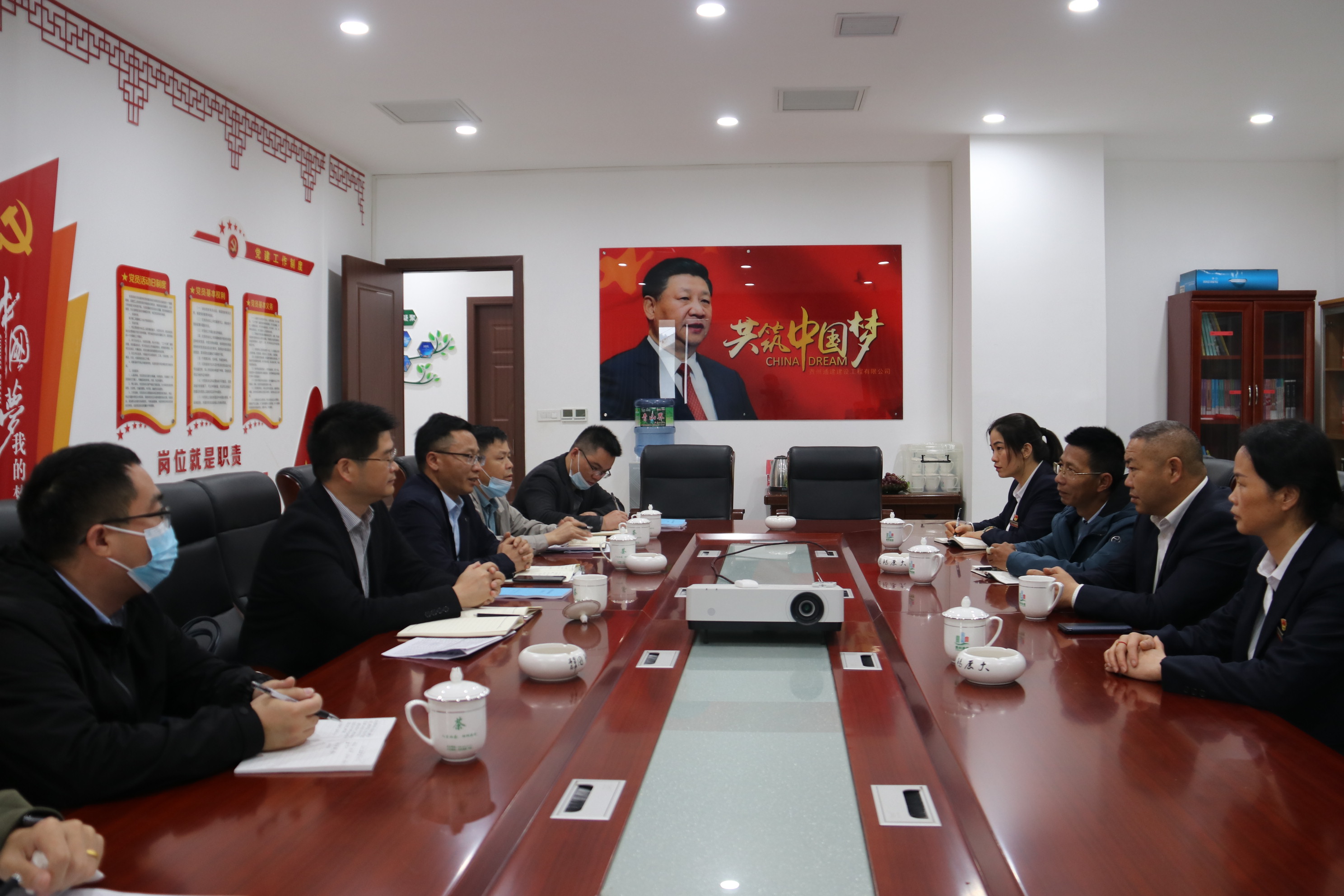 2022年5月14日上午,黎平县县委副书记田永富县自然资源局党组书记、局长赵永安县委办副主任吴昌凯及县税务局、县住房和城乡建设领导一行深入贵州通建建设工程有限公司调研指导工作。了解企业发展需求,倾听企业心声,协调解决公司发展过程中遇到的实际问题,并宣传和贯彻国家、省、州、县出台的各项惠企纾困政策措施切实帮助企业纾困解难,更好地推进各项惠企政策落到实处,并在公司会议室召开座谈会。