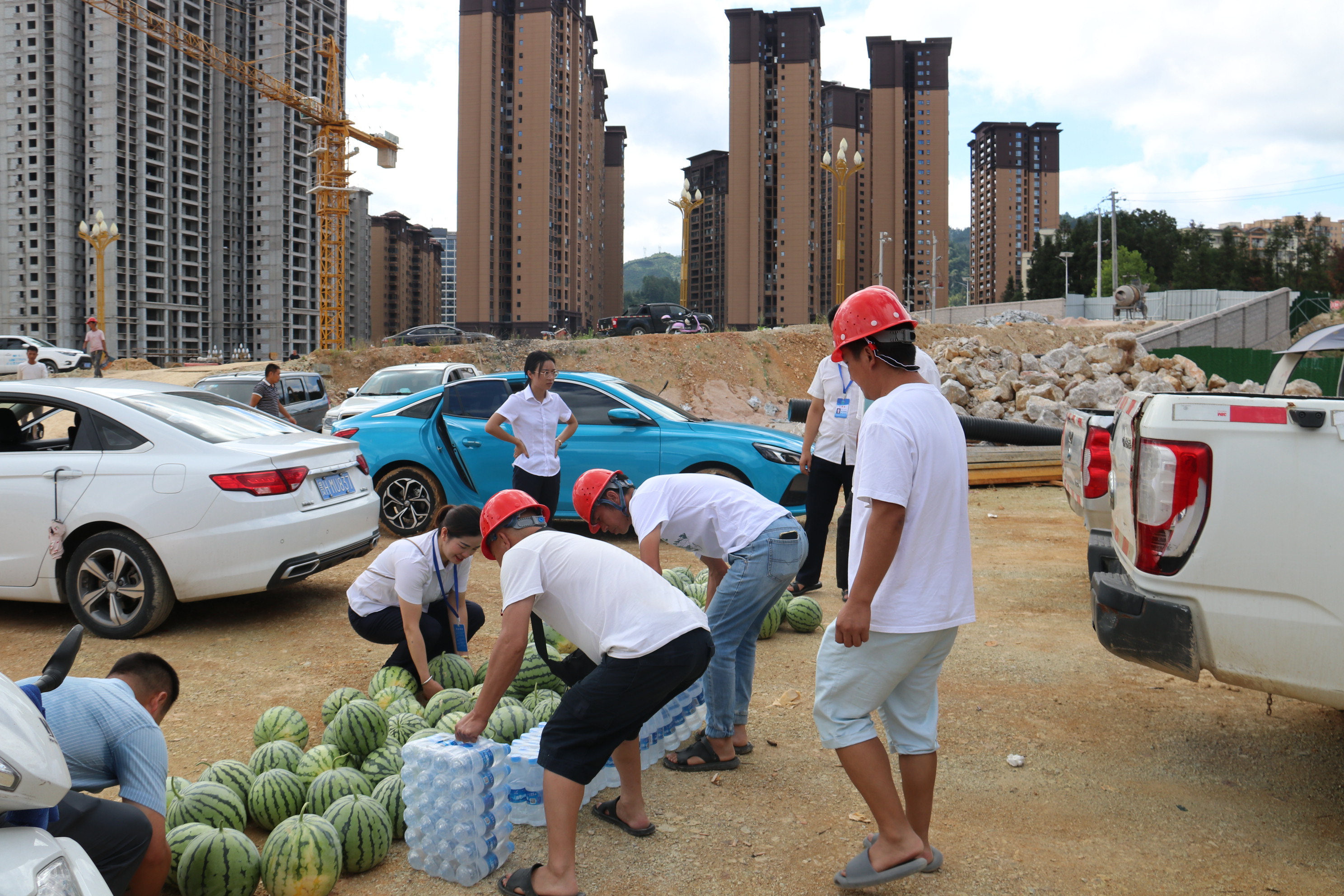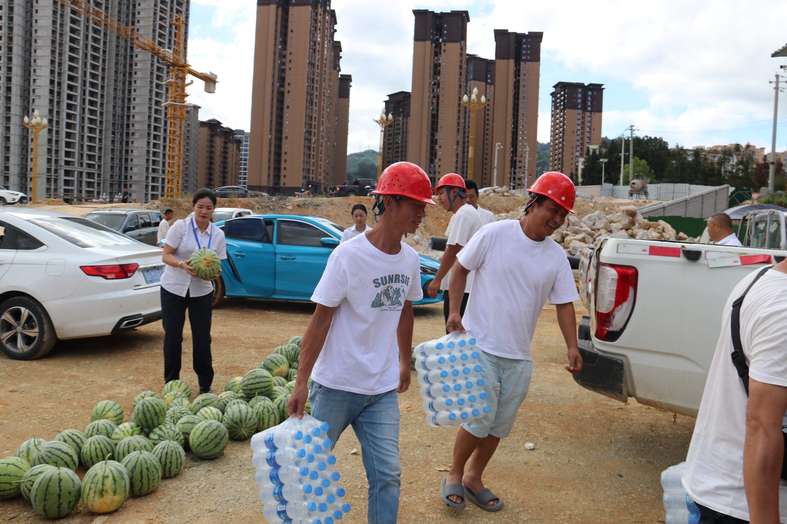 炎炎夏日,酷暑难耐。202386日上午,黎平县总工会党组书记常务副主席龙懿带队深入贵州通建建设工程有限公黎平县第九小学建设项目项目部,亲切慰问冒着酷暑战斗在一线的公司职工、建筑工人,为在高温情况下仍坚持工作的一线工人送去清凉和关怀。本次慰问活动,县总工会共为该项目部工人送去西瓜1000、矿泉水30